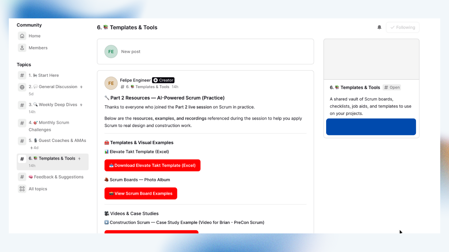 Templates & Tools you can use Monday morning. From Scrum boards to facilitator guides—built for construction.