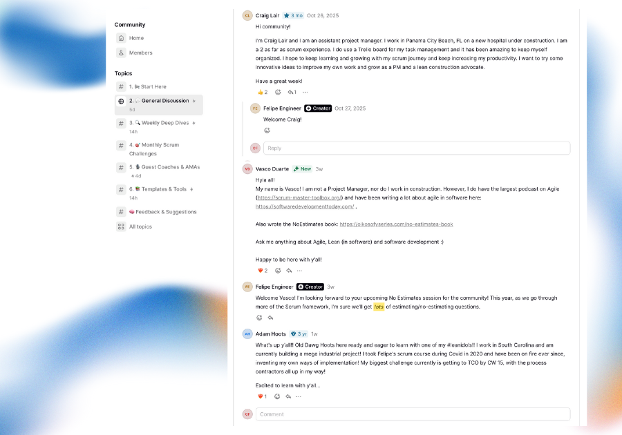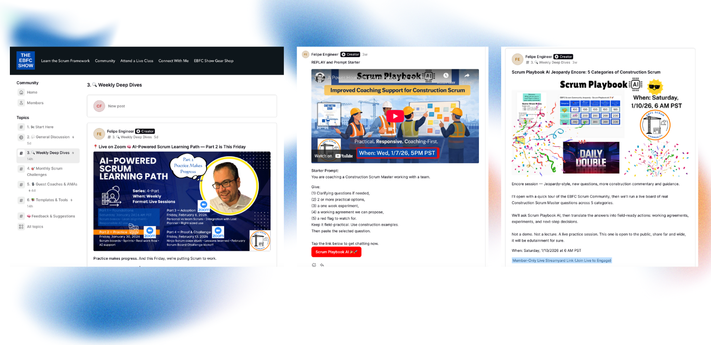 Since then, I've coached hundreds of AEC pros. I started the EBFC Scrum Community because I believe our industry can—and must—work better. Not next year. Now.